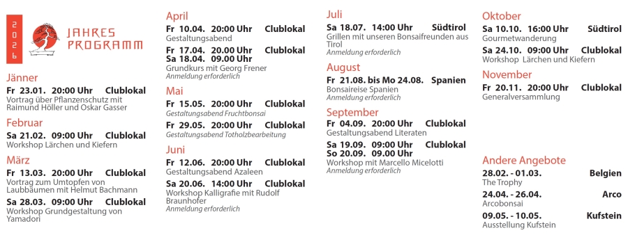 Jedes Jahr planen wir eine Vielzahl von Workshops, Gestaltungsabende und vieles mehr. Diese finden in regelmäßigen Abständen statt. Zusammen mit unseren clubinternen Experten und externen Referenten versuchen wir stets ein abwechslungsreiches und für Jedermann interessantes Programm zu organisieren. Egal ob Anfänger oder Fortgeschrittener.